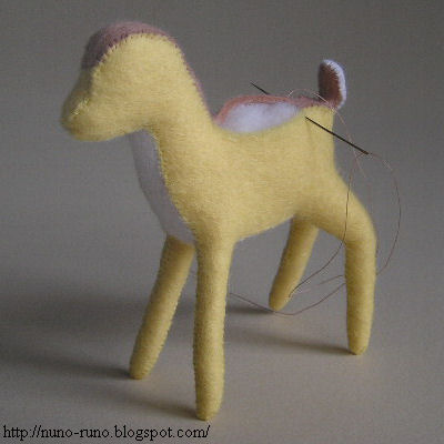 Pas exactement Bambi. Le visage est mon goût. Les principaux matériaux sont ressentis et fibre de polyester. coupe. Il n'a pas besoin de surplus de couture. Coudre les jambes à l'intérieur de l'abdomen. Ces pièces sont cousues de l'intérieur. Coudre le museau à la couronne (C - O - C). Coudre l'extérieur. Revenir point la flèche (M - N). de la couronne de l'intérieurCoudre undernose (A - K). Coudre le ventre pour le corps (E - F - G - H - I - J - K - J - I - H - G - F -. E) Coudre la couronne et l'arrière du corps (D - C - B - A - B - C - D - E - L -. E) les pièces de la